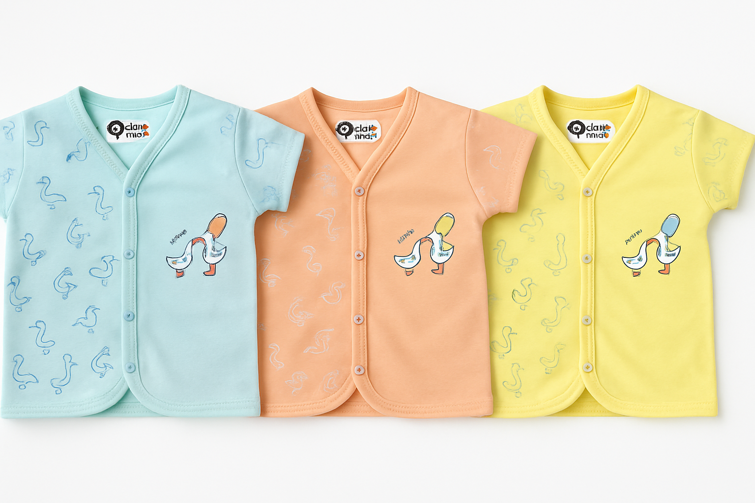 Easy-to-wear front open jablas with playful duck prints. Specially designed for newborns to change comfortably without pulling over the head.