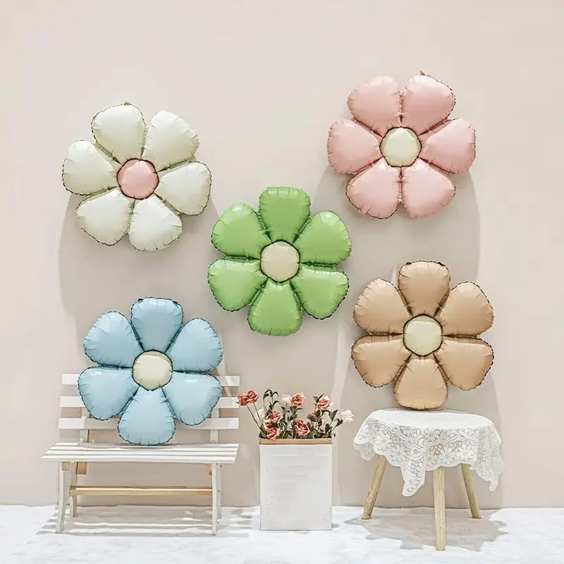 Cute pastel flower-shaped foil balloon. Perfect for party decoration, photos, and backdrops.
