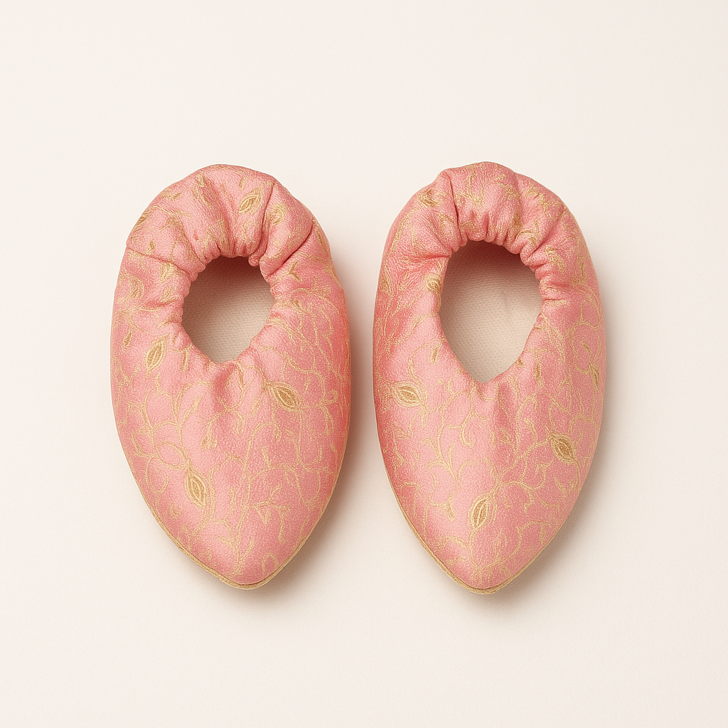 Peach Brocade Sherwani Set with Pearl Mala & Mojaris for Boys